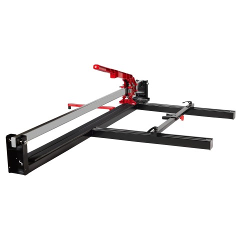 Сталева зварна рама з антикорозійним покриттям, монорейка 20×40 мм, різальна каретка на радіальних підшипниках. Робочий стіл 1240×160 мм із гумовим покриттям. Розкладна ніжка зі зміцненим шарніром — надійно фіксується навіть на нерівній поверхні.